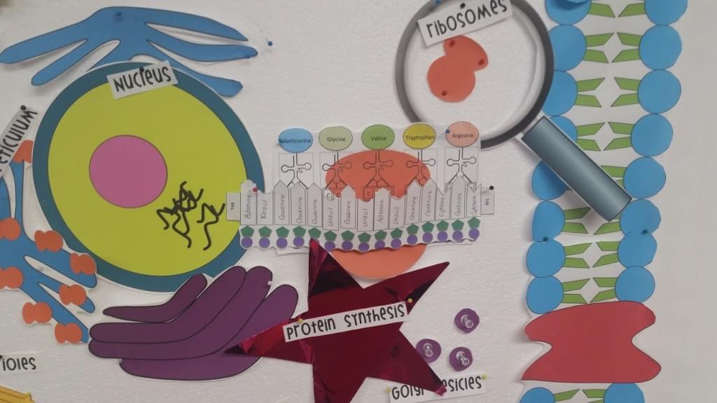 During our cell division unit, we had chromosomes instead of a nucleus, and the centrioles appeared in our animal cell. While learning protein synthesis, we had a whole lotta mRNA and amino acids. When working through cell respiration, we had ATP molecules.