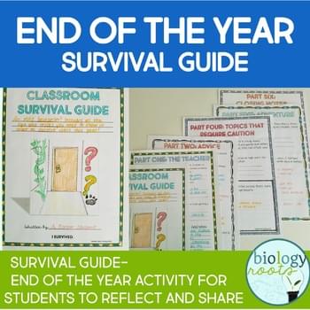 My FAVORITE thing to give my students at the end of the year is a playfully worded survival guide designed for current students to reflect on what worked for them in your class, and to share words of wisdom for your next year’s class. And you can learn a thing or two about what students think of your class! You can check out this Classroom Survival Guide . The completed guides will serve as a resource for new students who would like a previous student’s view on how to survive biology class and what to expect. They are fun to read and you can learn a thing or two, like maybe some common themes that students struggle with or some suggestions they have to make learning easier for them.